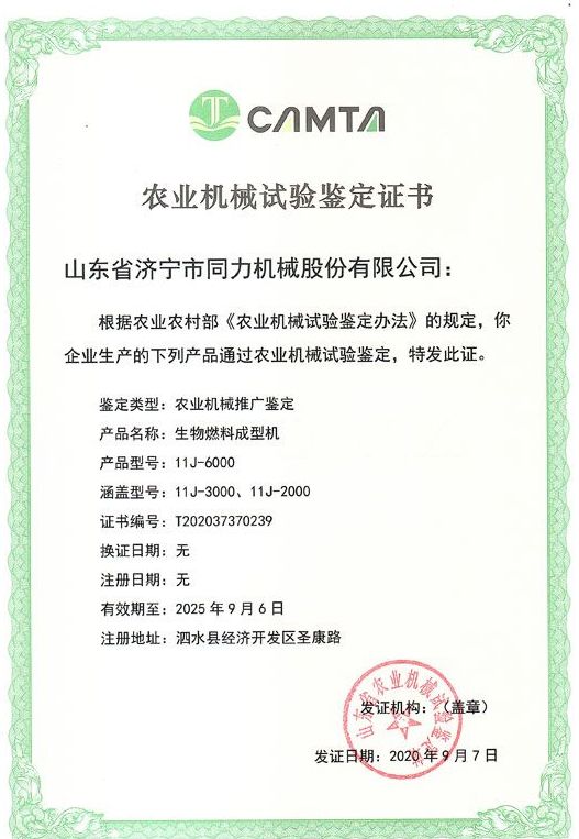 熱烈祝賀山東省濟(jì)寧市同力機(jī)械股份有限公司11J-6000、11J-3000、11J-2000產(chǎn)品通過(guò)了山東省農(nóng)機(jī)鑒定站的農(nóng)業(yè)機(jī)械推廣鑒定,獲得了山東省農(nóng)業(yè)機(jī)械試驗(yàn)鑒定證書。